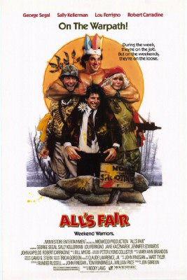 All's Fair 1989 0.00 (0 votos) Votar esta película Título originalAll's Fair Duración89 min. País DirectorRocky Lang GuiónJohn P. Finnegan, Watt Tyler RepartoGeorge Segal, Sally Kellerman, Robert Carradine, Jennifer Edwards, Jane Kaczmarek, John Kapelos, Lou Ferrigno, Steve Tyler ProductoraMidwood Productions GéneroComedia