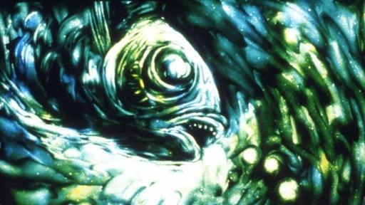 Una manzana cae en un lago, creando la ilusión de que un pez se encuentra en el recinto. Primera obra del nominado al Oscar Koji Yamamura.