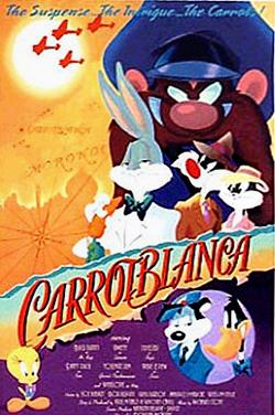 Parodia y homenaje de la película "Casablanca" dirigida por Michael Curtiz en 1942, con los personajes de los Looney Tunes en los papeles principales. En Carrotblanca vemos a Bugs Bunny como Rick, a Piolín como Usmarte (parodia de Ugarte/Peter Lorre), Silvestre como Victor Laszlo, Pepe la mofeta como el prefecto de policía Louie, el pato Lucas como Sam, Penelope Pussycat como Ketty Kitty (parodia de Ilsa/Ingrid Bergman), y muchos personajes secundarios que circulan alrededor. Fue estrenado en cines norteamericanos junto a la película "El pequeño panda" y en el resto del mundo junto al largometraje de animación "Hubi, el pingüino". Así mismo, se incluye como extra en las ediciones especiales, HD-DVD y Blu-Ray de "Casablanca".
