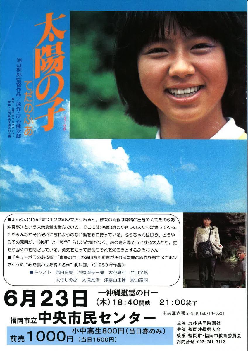 Child of the Sun 1980 0.00 (0 votos) Votar esta película Título originalTaiyo no ko teda no fua Duración142 min. País DirectorKirio Urayama GuiónKirio Urayama, Kenjirô Haitani RepartoJun Hamamura, Shôji Ishibashi, Toshitaka Itô, Chôichirô Kawarazaki, Mayumi Ôzora, Taiji Tonoyama, Masane Tsukayama, Shinobu Ôtake, Hideji Otaki ProductoraTaiyo no Ko Production GéneroDrama