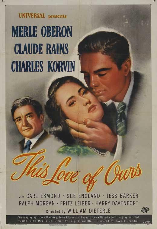 Como te quise te quiero 1945 0.00 (0 votos) Votar esta película Título originalThis Love of Ours Duración90 min. País DirectorWilliam Dieterle GuiónJohn D. Klorer, Leonard Lee, Bruce Manning. Obra: Luigi Pirandello RepartoMerle Oberon, Claude Rains, Charles Korvin, Carl Esmond, Sue England, Jess Baker, Helen Thimig, Harry Davenport, Dave Willock, Ralph Morgan, Howard Freeman, Fritz Leiber Jr GéneroDrama