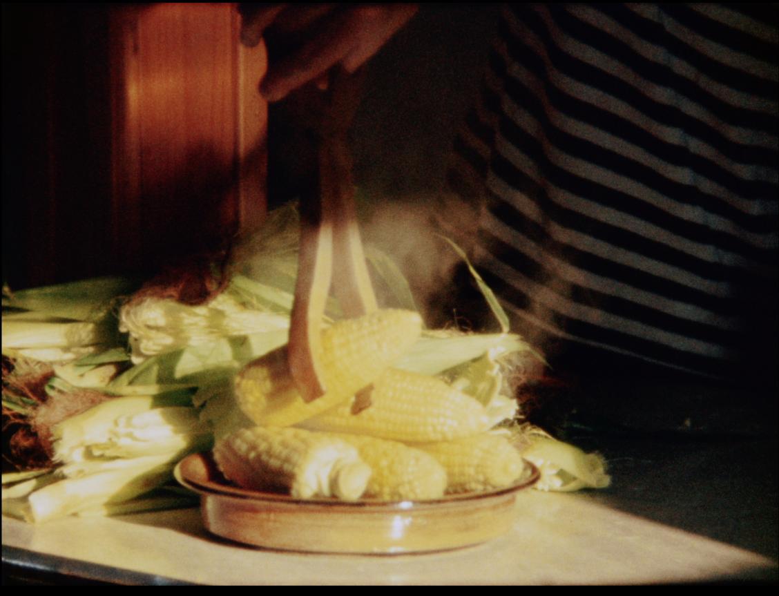 «Una cámara fija compañera de Fog Line. Hojas de color verde arrancadas de las mazorcas de maíz, y más adelante, las vibrantes mazorcas amarillas colocadas en un recipiente vaporoso que se encuentra a la espera. Cada una de estas acciones inaugura un periodo en el cual uno contempla una imagen cuya constante transformación es apenas perceptible ?el delicado lento movimiento de la luz y la sombra, la evolución del sutil vapor en el grano de película. Una meditación sobre los frágiles momentos del pasaje del maíz del sol viviente que alimenta a la planta para comer a la imagen de la luz. La mente trata de comprender la propia duración, de distinguir su propia creación de su propia percepción, pero las distinciones se borran en la totalidad de los tiempos y en el flujo de la conciencia». (Larry Gottheim)