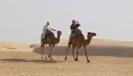 Un turista en el desierto quiere abrir una caja de madera, pese a que los beduinos insisten en que allí hay un animal peligroso.