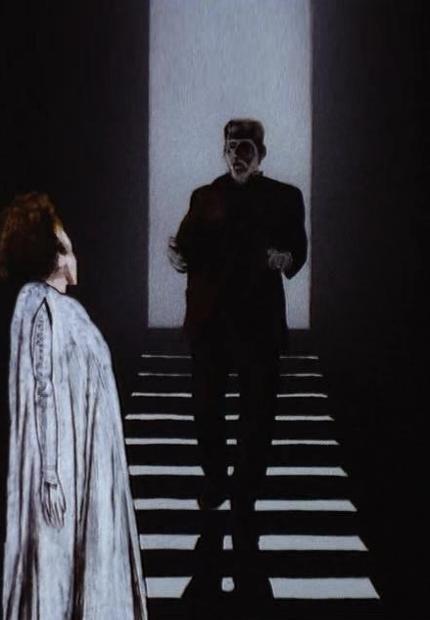 "Le ravissement de Frank N. Stein" prolonga el diálogo con el cine al evocar La novia de Frankenstein (James Whale. Bride of Frankenstein, 1935): utilizando imágenes del filme en cuestión, Schwizgebel aplica un tratamiento de color para apropiarse de su secuencias clave, el grito de terror de una rediviva Elsa Lanchester al encontrarse de frente con el torturado rostro del Monstruo-Karloff.