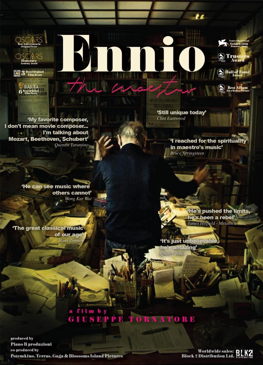 Retrato de Ennio Morricone, el compositor de cine más popular y prolífico del siglo XX, uno de los más queridos por el público, dos veces ganador del Oscar y autor de más de quinientas partituras inolvidables. El documental presenta al Maestro a través de una larga entrevista realizada por Tornatore, testimonios de artistas y directores como Bernardo Bertolucci, Giuliano Montaldo, Marco Bellocchio, Dario Argento, los hermanos Taviani, Carlo Verdone, Barry Levinson, Roland Joffé, Oliver Stone, Quentin Tarantino, Bruce Springsteen, Nicola Piovani, Hans Zimmer y Pat Metheny, música y material de archivo. El documental también se propone revelar el lado menos conocido de Morricone, como su pasión por el ajedrez, que puede tener vínculos misteriosos con su música. Así como el origen en la vida real de algunas de sus intuiciones musicales.
