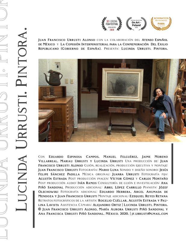 Retrato de la pintora Lucinda Urrusti (Melilla, Marruecos español, 1926), que llegó a México con sus padres y hermano en 1939, como refugiados de la Guerra Civil española. Para ella lo más importante en la vida son el arte y su familia.