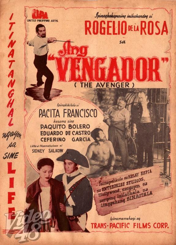 The Avenger 1948 0.00 (0 votos) Votar esta película Título originalAng vengador Duración0 min. País DirectorSidney Salkow RepartoRogelio de la Rosa, Pacita Francisco, Paquito Bolero, Eduardo de Castro, Ceferino García GéneroAcción