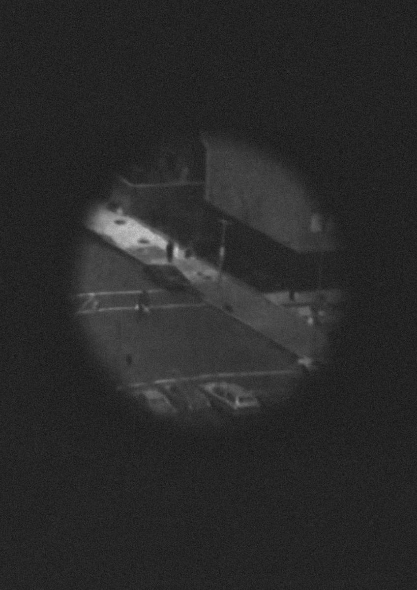 Ubicado en un punto de vista elevado, Holt usa cinco aperturas en un tablero negro colocado frente a la cámara para revelar lentamente una vista controlada y abstraída de un paisaje urbano. Al discutir esta vista de Nueva York con Ted Castle, Holt transforma estratégicamente la recepción pasiva en un intercambio interactivo.